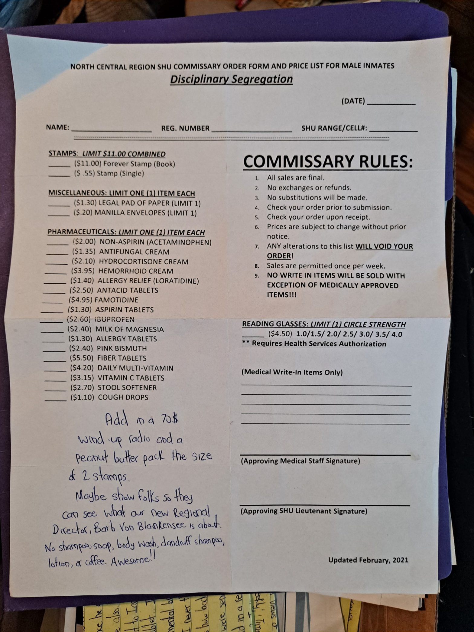 Since I’ve been back here I’ve seen the entire SHU get turned over except my neighbor Smiles and I, who has 8 months clear conduct and is spun constantly over his eligibility…. Days ago someone who had masturbated in front of multiple staff members was allowed back for the second time, Smiles and I still wait…