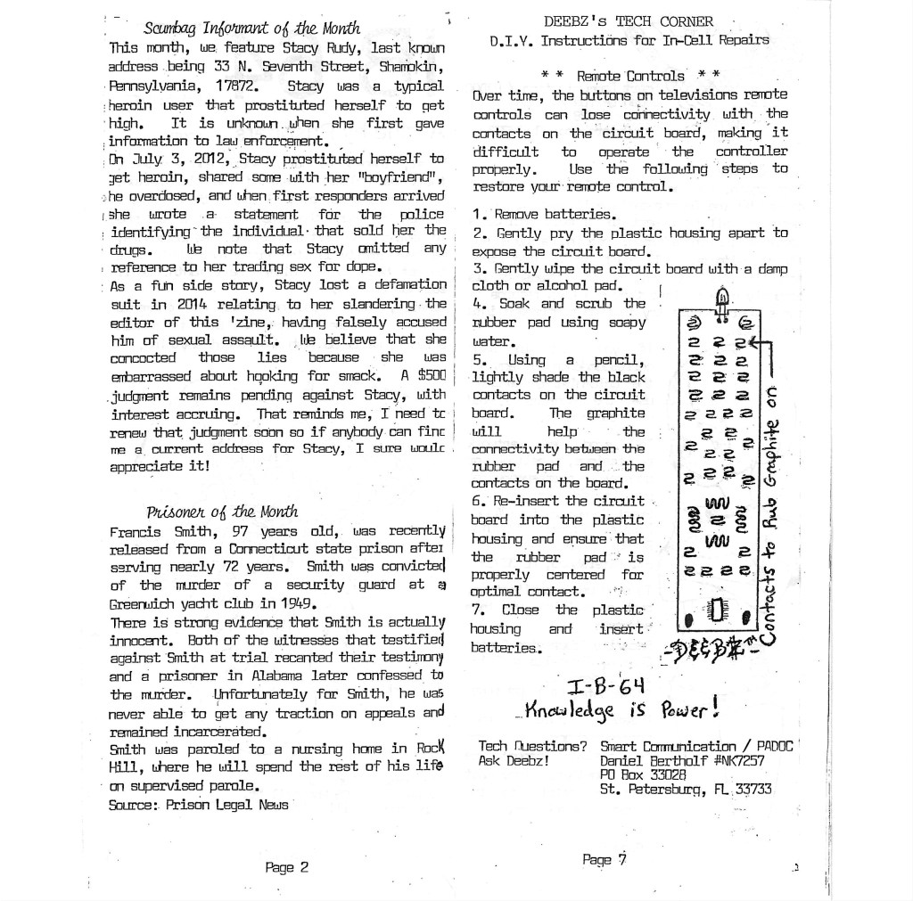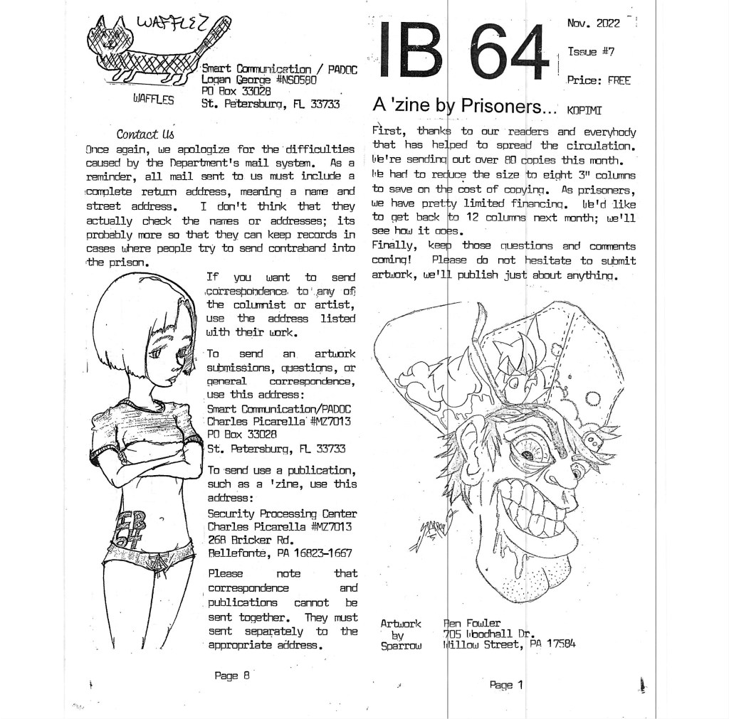 IB 64 Issue #7, November 2022 – A Zine by Prisoners Posted bymongoosedistroNovember 24, 2022Posted inUncategorized ib64-issue-7Download Share this: Share on X (Opens in new window) X Share on Facebook (Opens in new window) Facebook Like Loading... Related Published by mongoosedistro "Contains material solely for the purpose of achieving breakdown of prison through disruption" -Texas Dept. of Criminal Justice mailroom View more posts