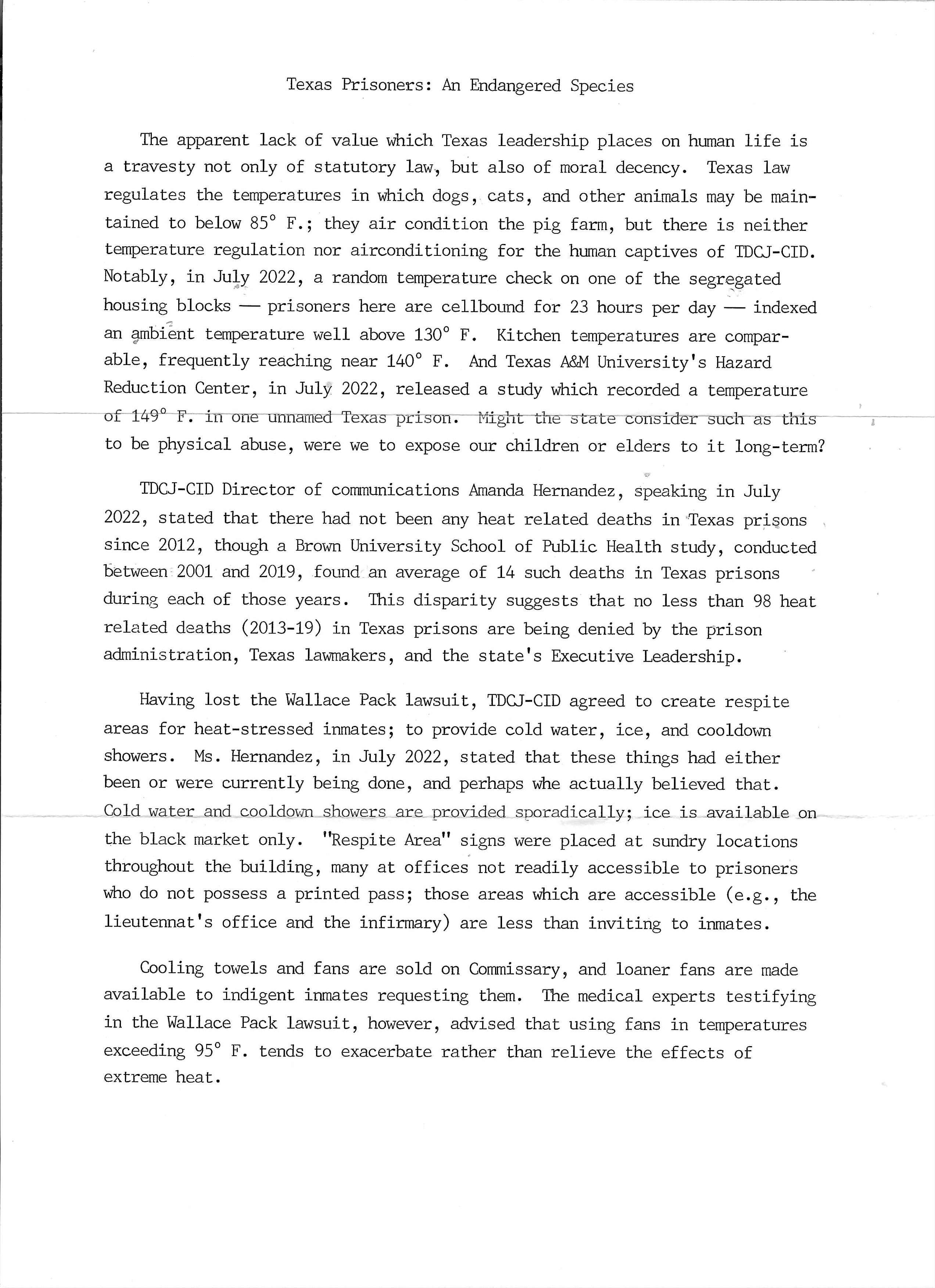 Texas Prisoners: An Endangered Species – by Steven McCain
